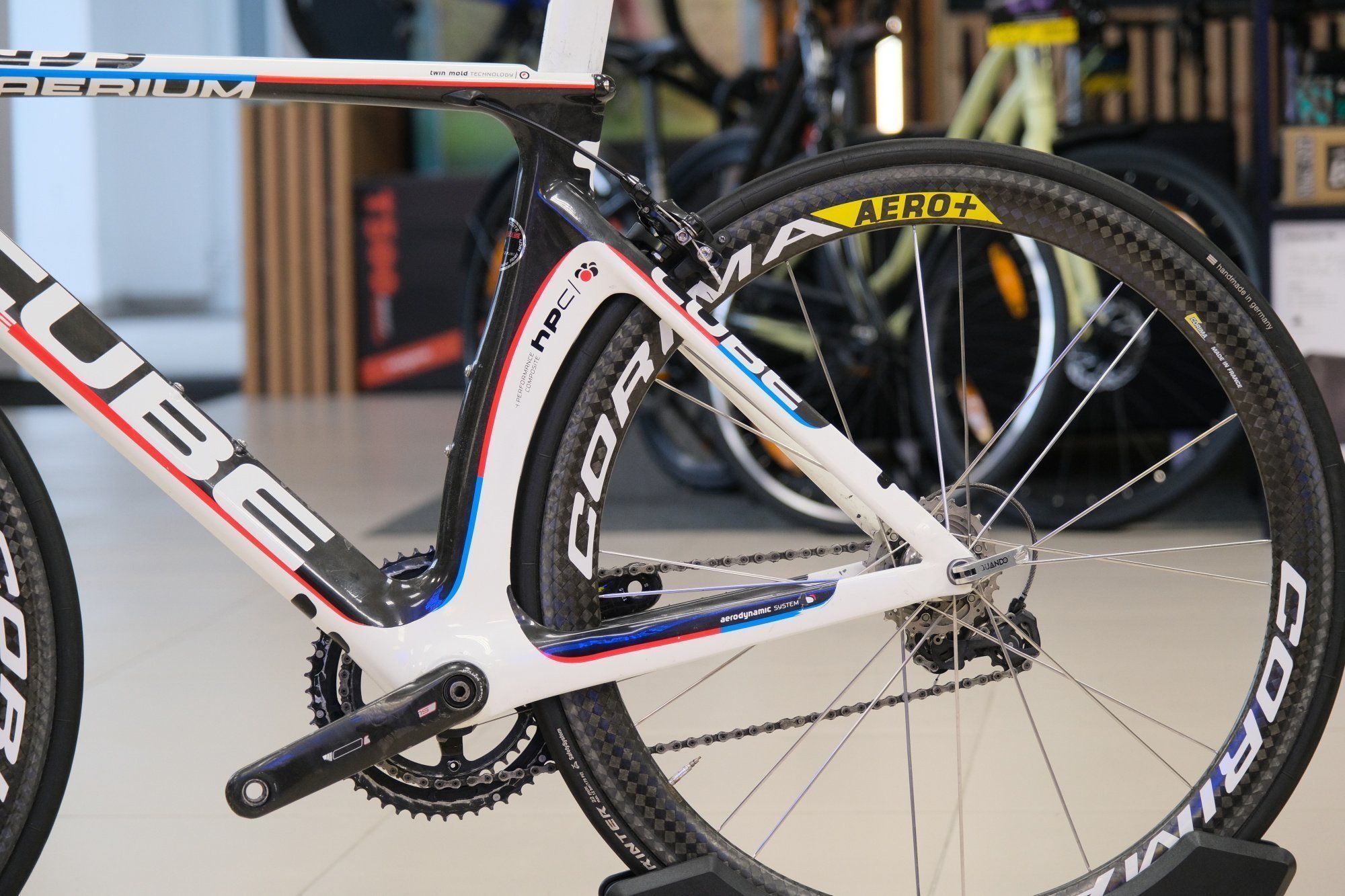 В комплекте две пары колес - карбоновые (на фото) и тренировочные алюминиевые.
