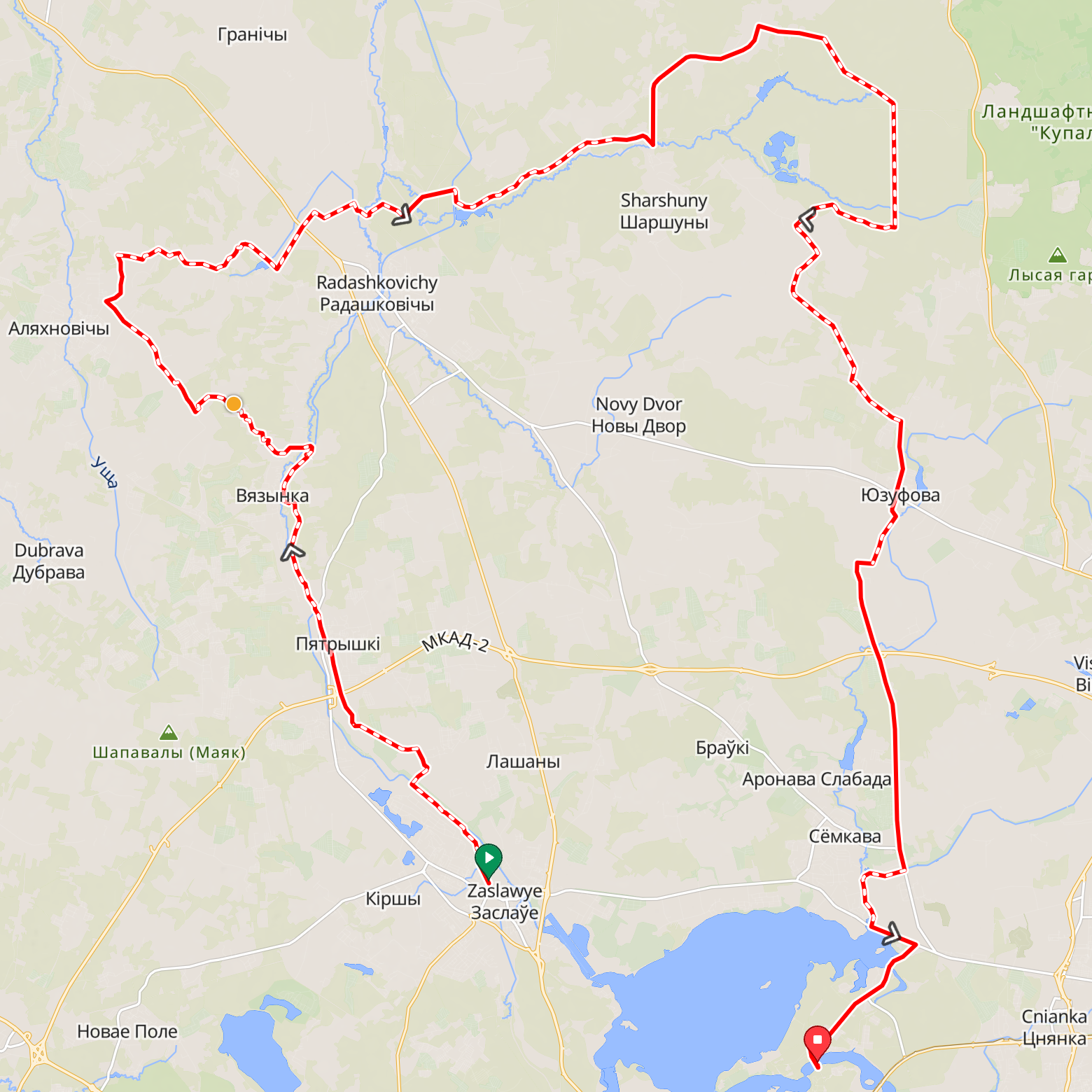 Велосипедный маршрут «Ridin that Train — Zaslavi / Canal / Sharshuni Lec» продолжительностью 93.4 км.