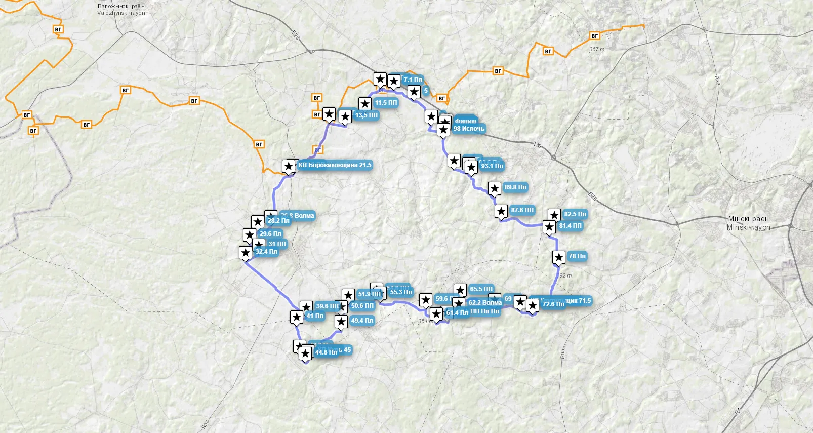 Велосипедный маршрут «Велогонка Налибоки 2017» продолжительностью 98,85 км.